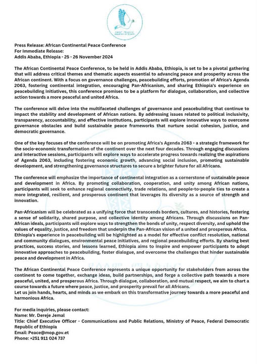 አህጉር አቀፍ የሰላም ጉባዔ ሊካሄድ ነው