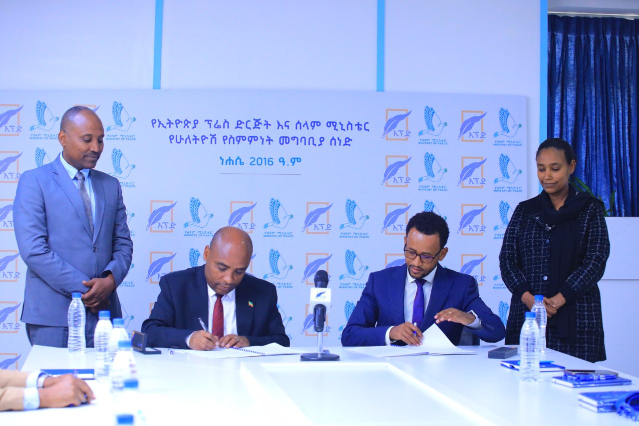 ነሐሴ 8 ቀን 2016 ዓ.ም. የሰላም ሚኒስቴር ከኢትዮጵያ ፕረስ ድርጅት ጋር በጋራ ለመሥራት የሚያስችል የመግባቢያ ሰነድ ተፈራረመ፡፡