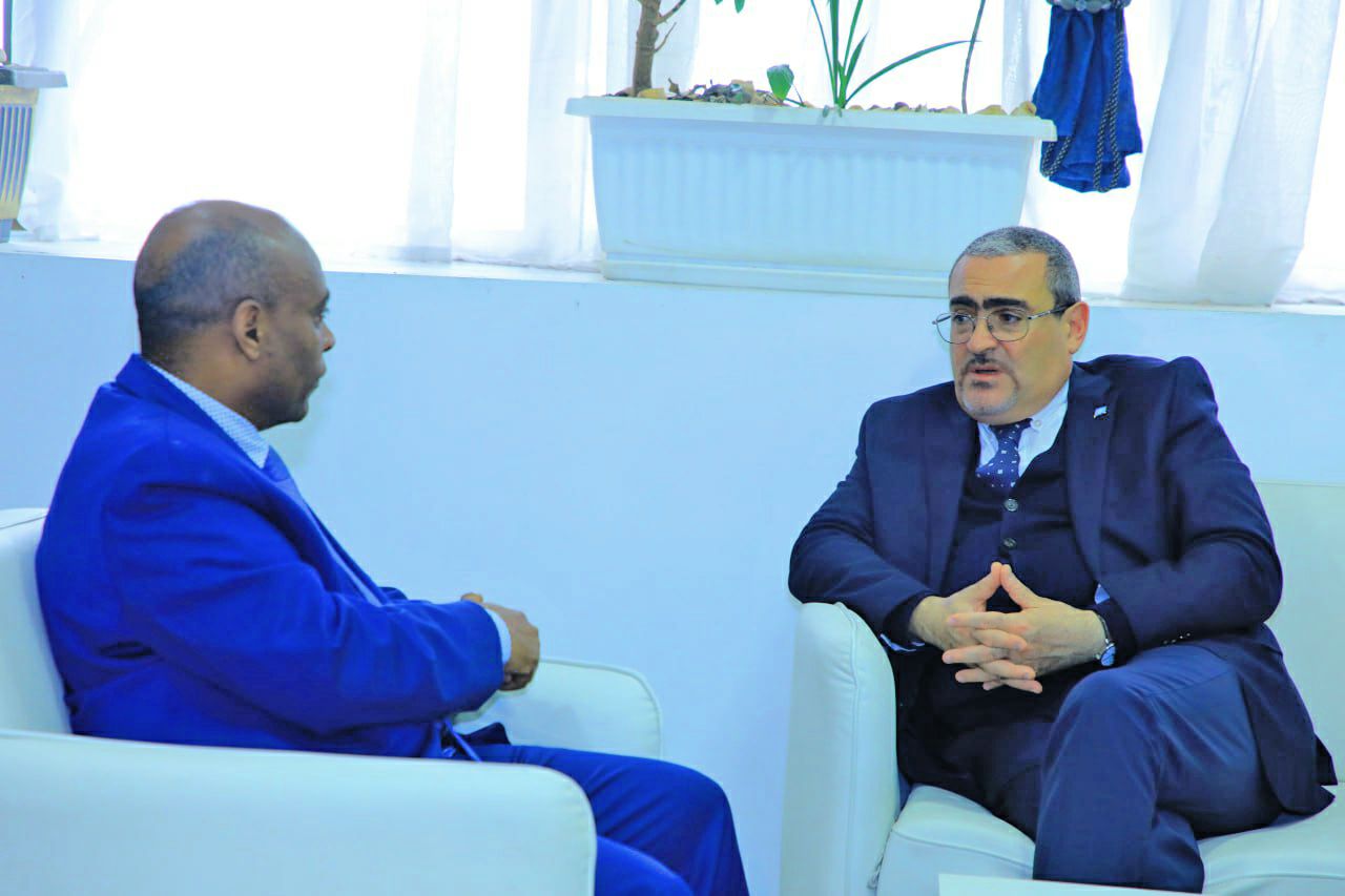ነሐሴ 14 ቀን 2016ዓ.ም. የሰላም ሚኒስቴር የሰላም ግንባታ እና ብሔራዊ መግባባት ዘርፍ ሚኒስትር ዴኤታ ክቡር ከይረዲን ተዘራ (ዶ/ር) በኢትዮጵያ የተባበሩት መንግሥታት ድርጅት የሰብዓዊነት ጉዳይ አስተባባሪ ዶ/ር ራሚስ አልካብሮቭ ጋር የሰላም ግንባታ ሥራዎችን በትብብር መሥራት በሚቻልባቸው ጉዳዮች ላይ ውይይት አድርገዋል፡፡